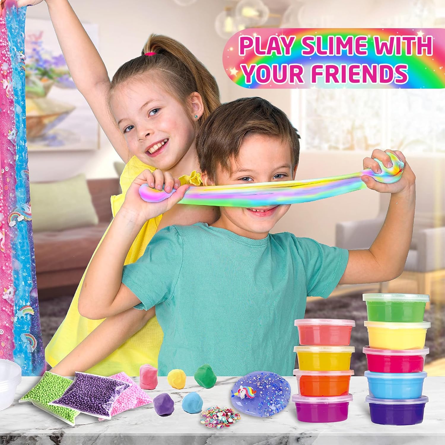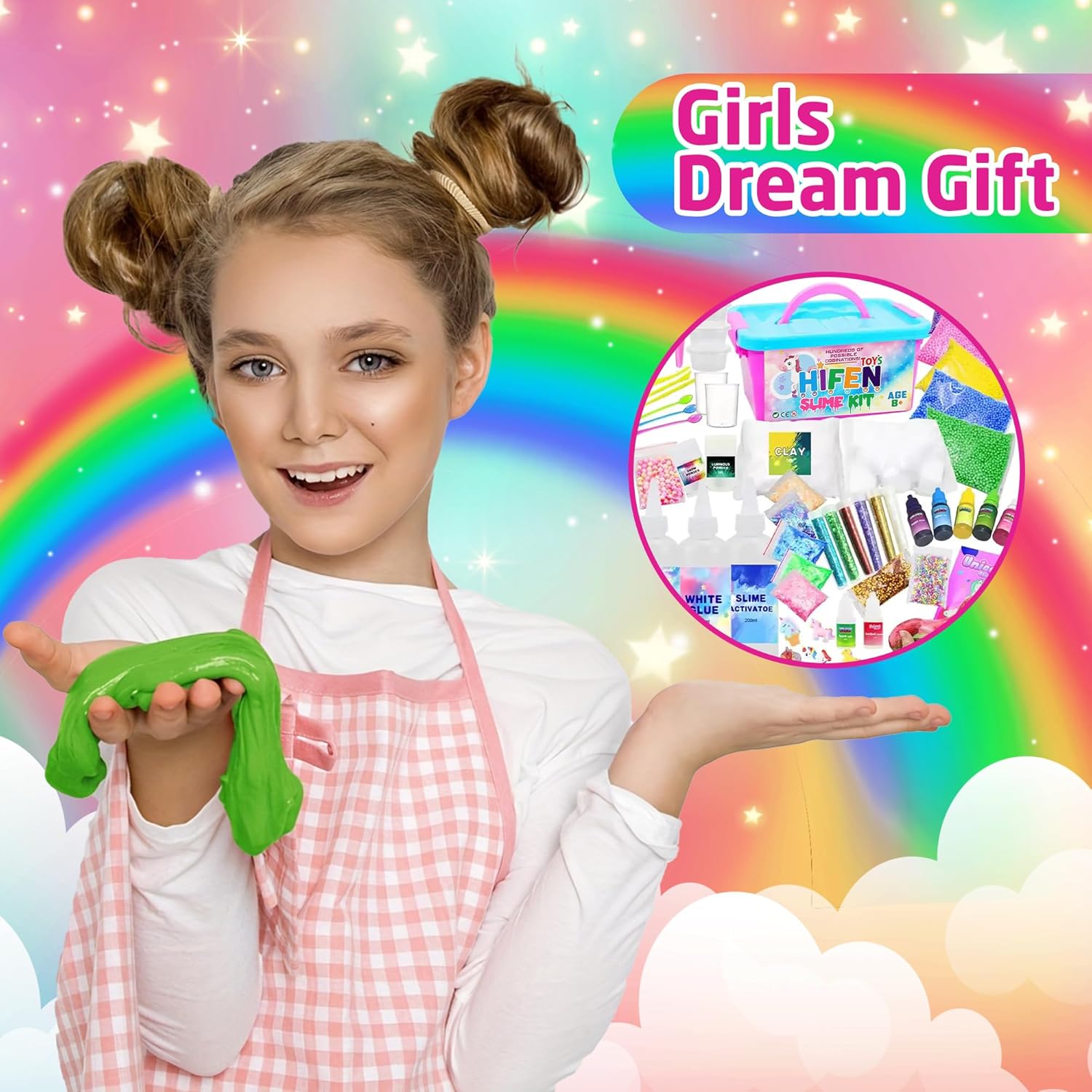 57 Pcs Slime Kit – DIY Fluffy, Non-Sticky Glitter Slime Set for Kids Ages 8+ Fun Creative Gift for Boys & Girls