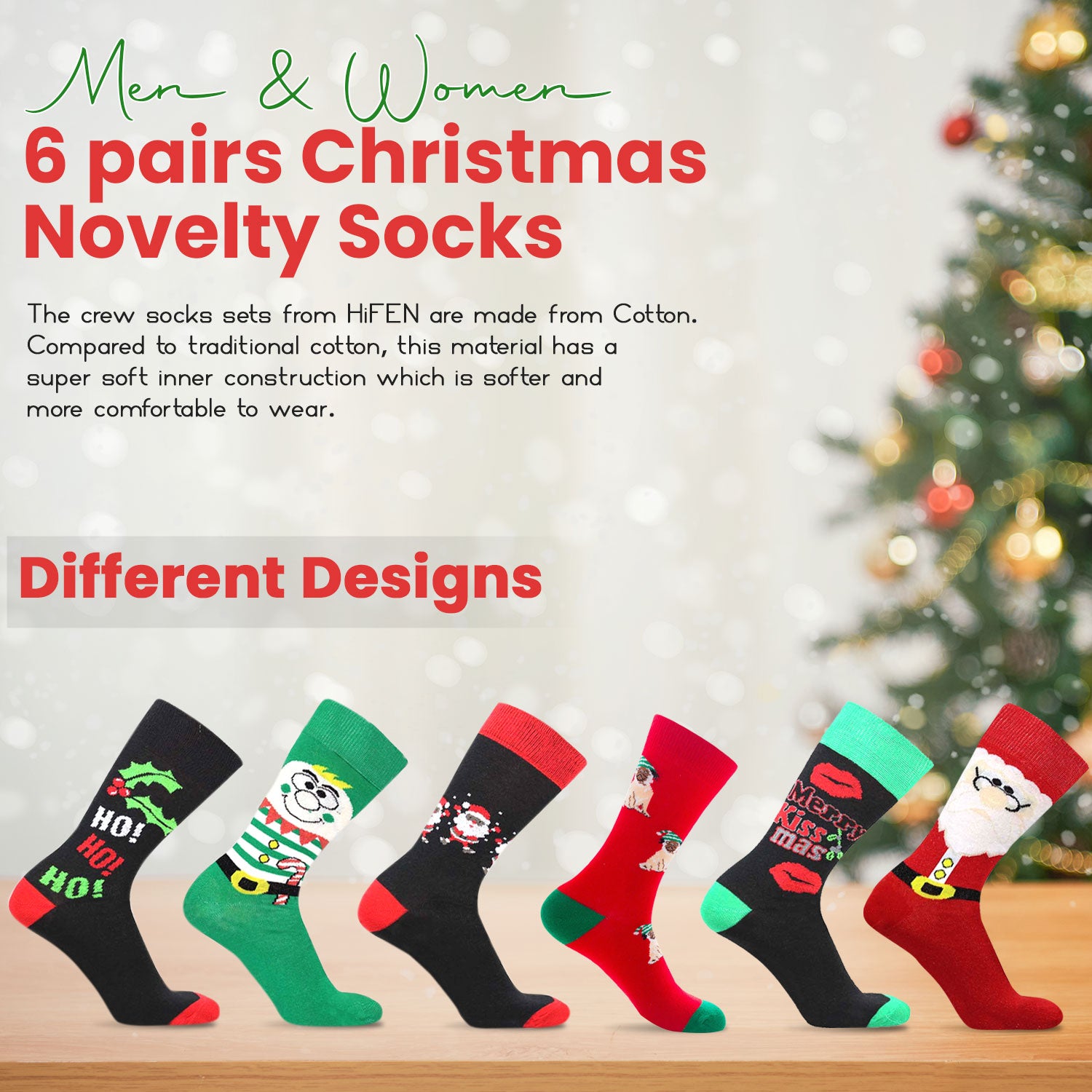 6 Pairs Christmas Socks – Festive Novelty Socks for Men & Women