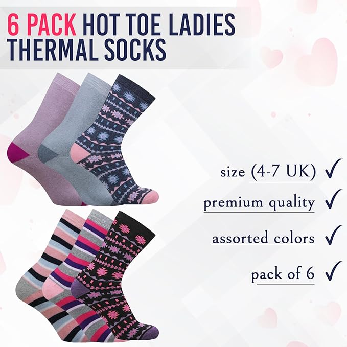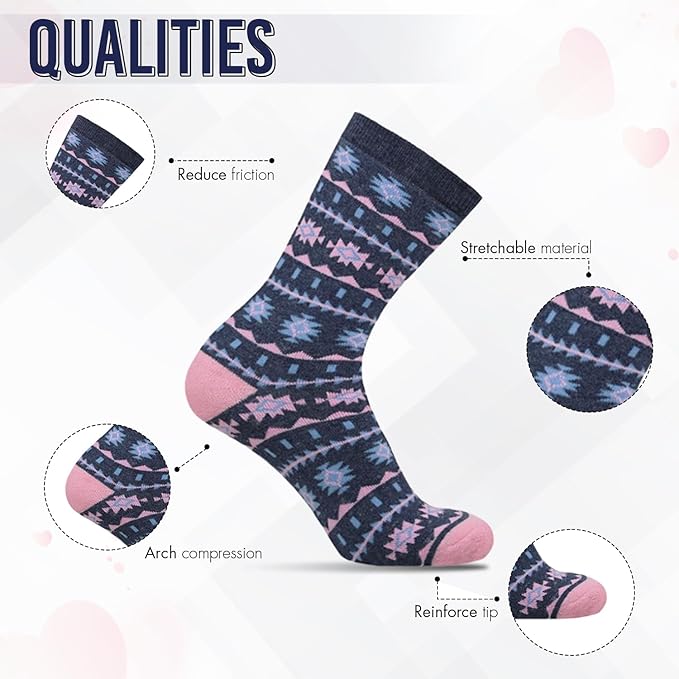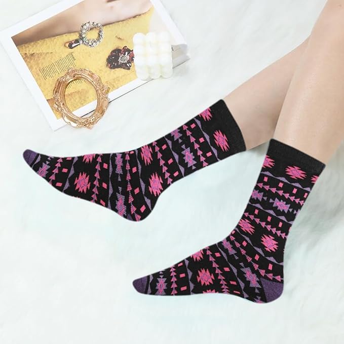 Stay warm, stylish, and comfortable all day with HiFEN’s 6 Pairs Women’s Wool Thermal Socks. Crafted from premium combed wool with added elasticity, these socks provide superior softness, cushioning, and durability. Designed to wick away moisture and keep your feet dry, they’re perfect for indoor use or outdoor adventures like hiking, skiing, or mountaineering. The colourful designs add a fun touch to your winter outfits, making them both practical and fashionable.
