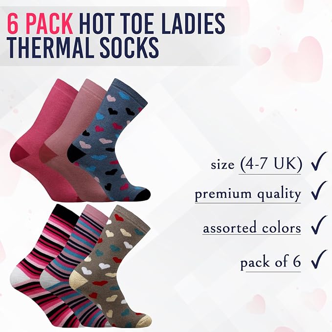 6 Pairs Women’s Wool Thermal Socks – Warm Winter Crew Socks UK 4–7