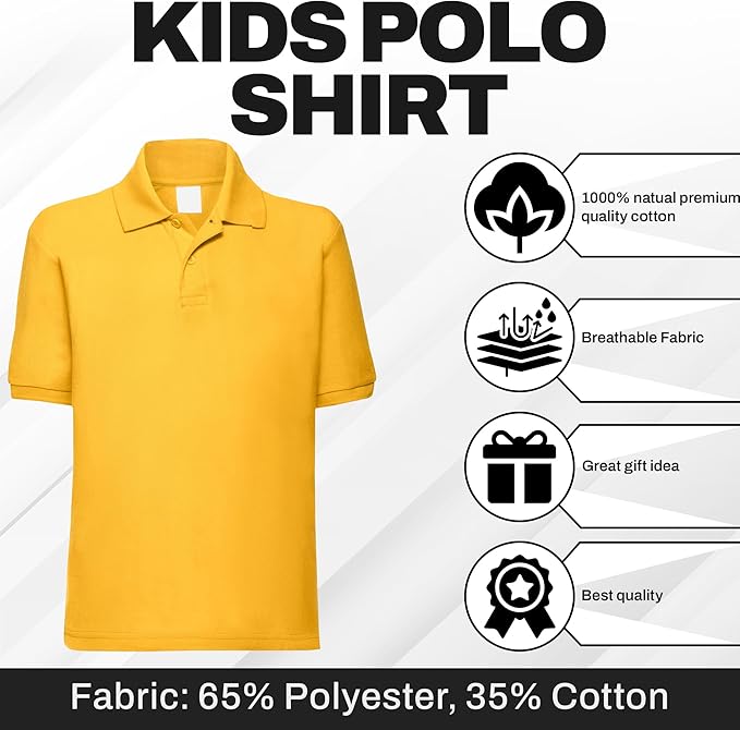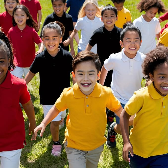 - Classic Polo Design: Collared neck with short sleeves for a neat school look.