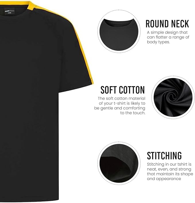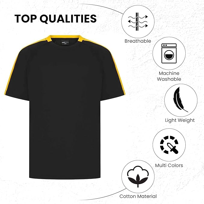 - Stylish Design – Crew neck with contrast color side panels for a sporty look.
