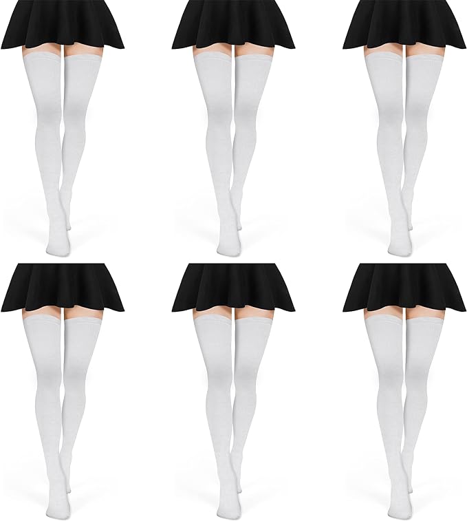 - Premium Quality - Our thigh high socks for women are made from soft and comfortable cotton blends, are soft, comfortable, and durable. The white stockings have good elasticity, providing both comfort and confidence as you go about your activities.