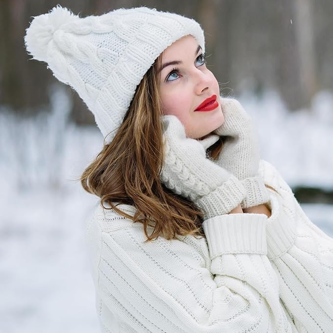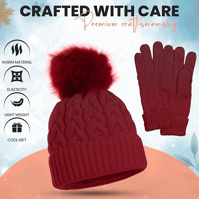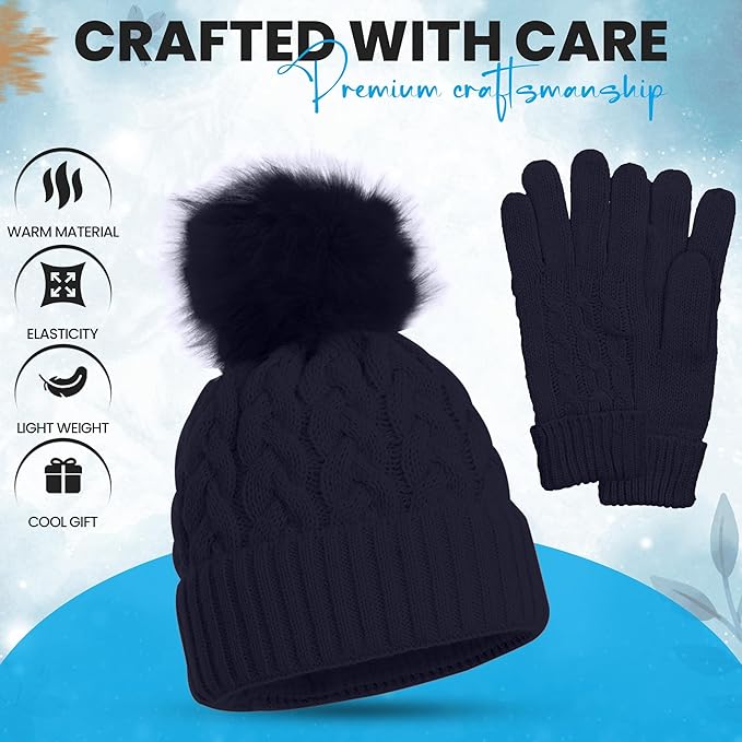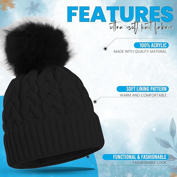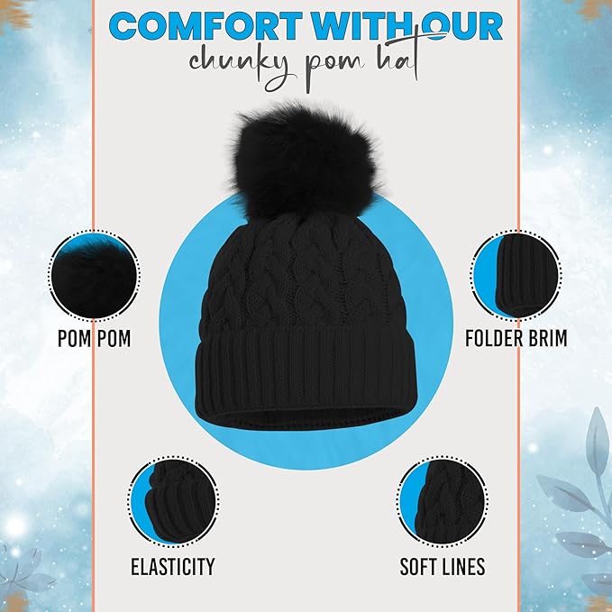 - Stylish Design – Cable knit hat with faux-fur pom pom adds a fashionable touch.